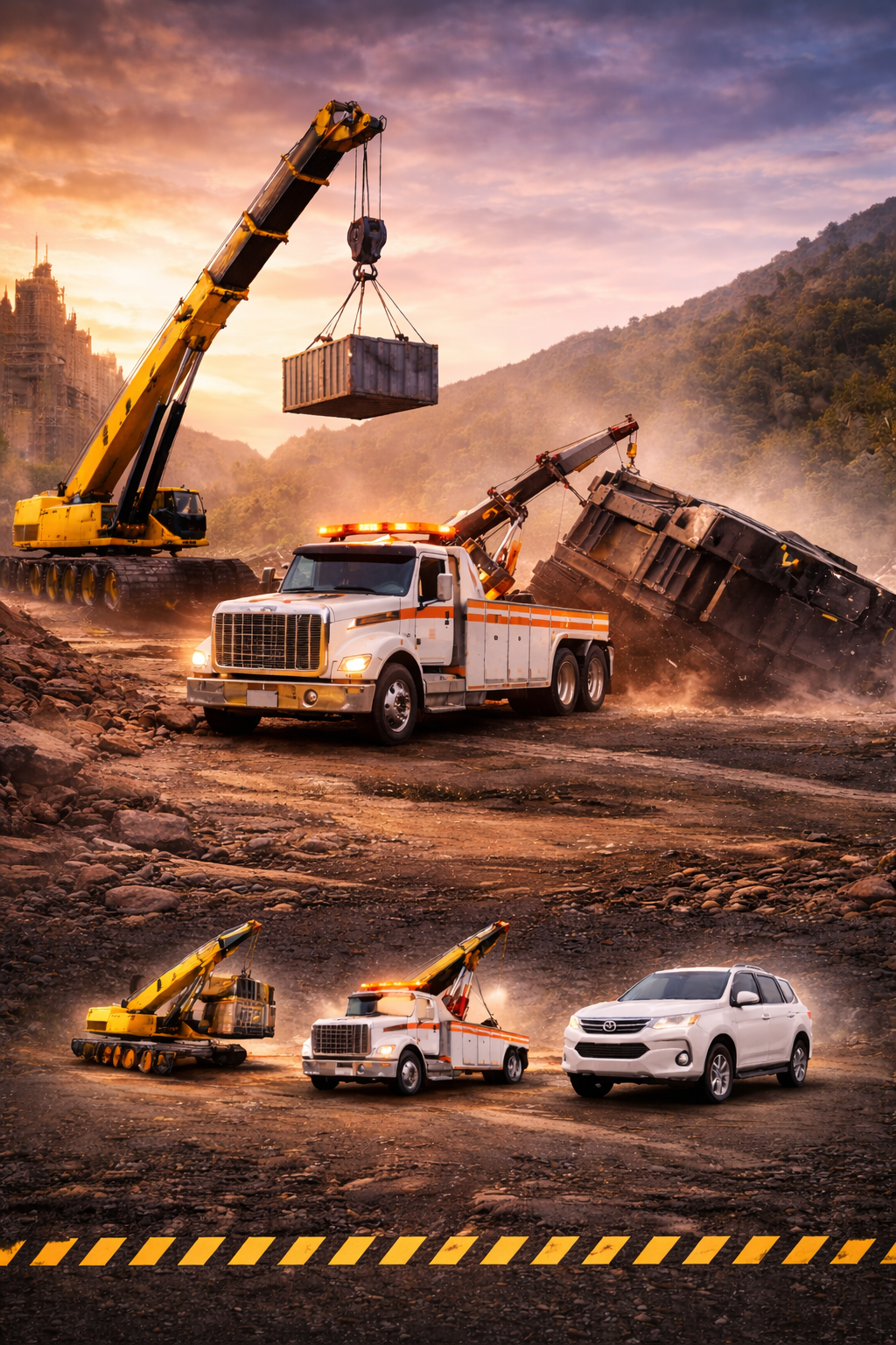 We provide 12-ton to 100-ton crane services, emergency vehicle recovery, and reliable car travel services — all under one roof. Whether it’s industrial lifting, roadside recovery, or the need for safe travel,